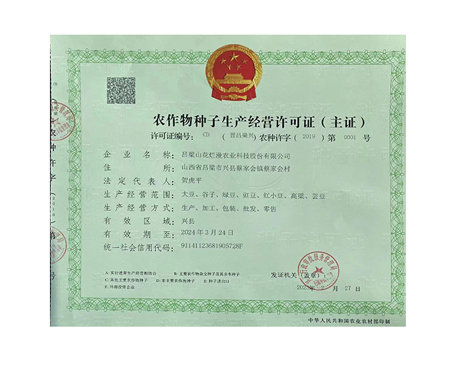 • 農(nóng)作物種子生產(chǎn)經(jīng)營許可證(主證)